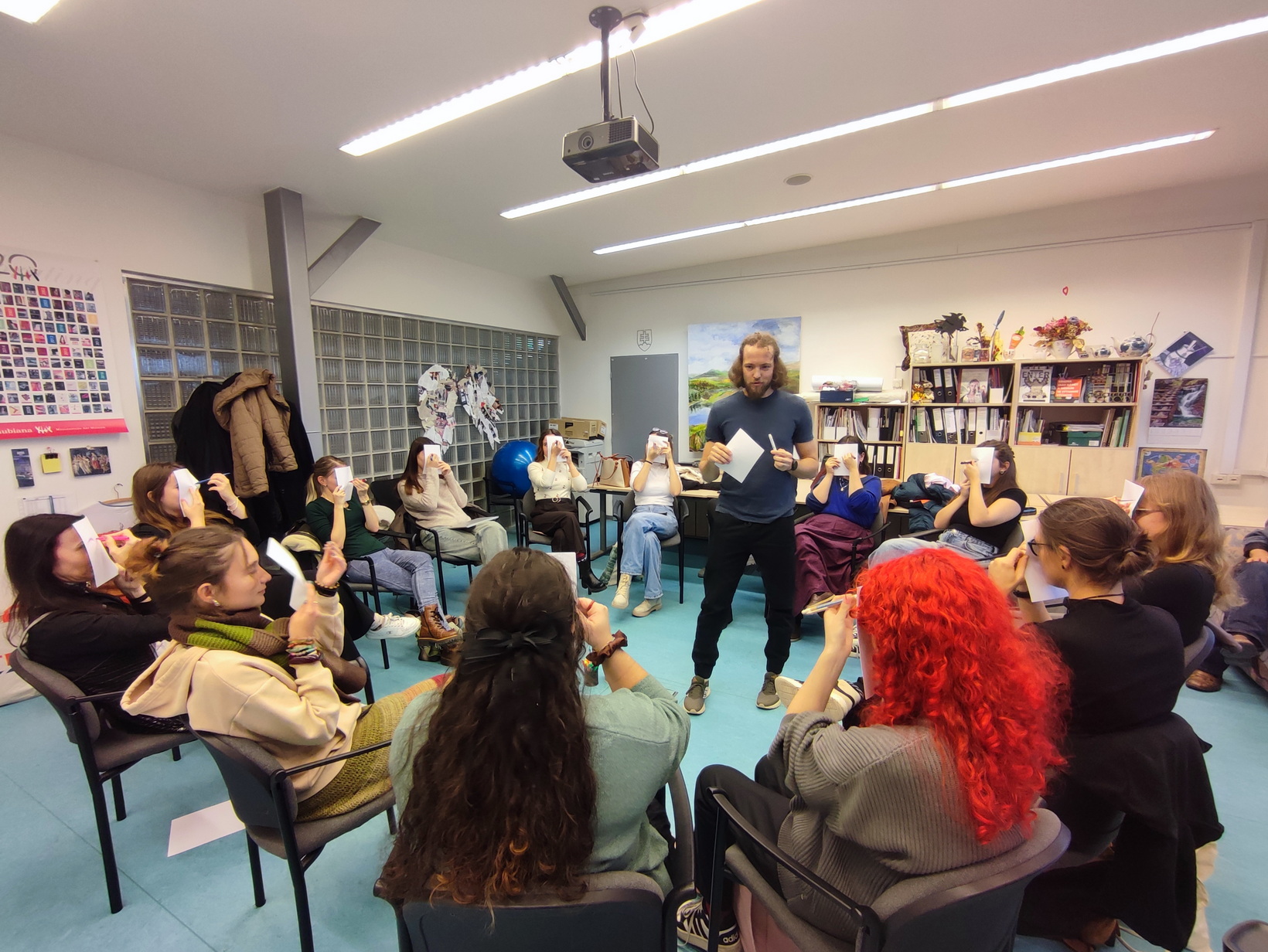 Prednáška bola pre budúcich učiteľov výtvarnej výchovy príležitosťou reflektovať svoju vysokoškolskú prípravu, pripomenúť si vlastnú motiváciu výberu učiteľského povolania, a zažiť časť hodiny vedenej skúseným učiteľom.