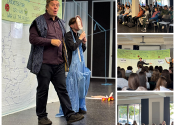 Priestory Pedagogickej fakulty UKF v Nitre boli v utorok 28. októbra 2025 rušnejšie než obvykle. Už ráno sme na Katedre anglického jazyka a kultúry privítali Davida Fishera, zakladateľa a hlavného člena pražského edukačného divadla The Bear Theatre – The Educational Theatre. David a jeho kolegovia nám v dopoludňajších hodinách realizovali dve predstavenia, v ktorých zaujímavo, vtipne a interaktívne priblížili dôležité míľniky v histórii Spojeného kráľovstva.