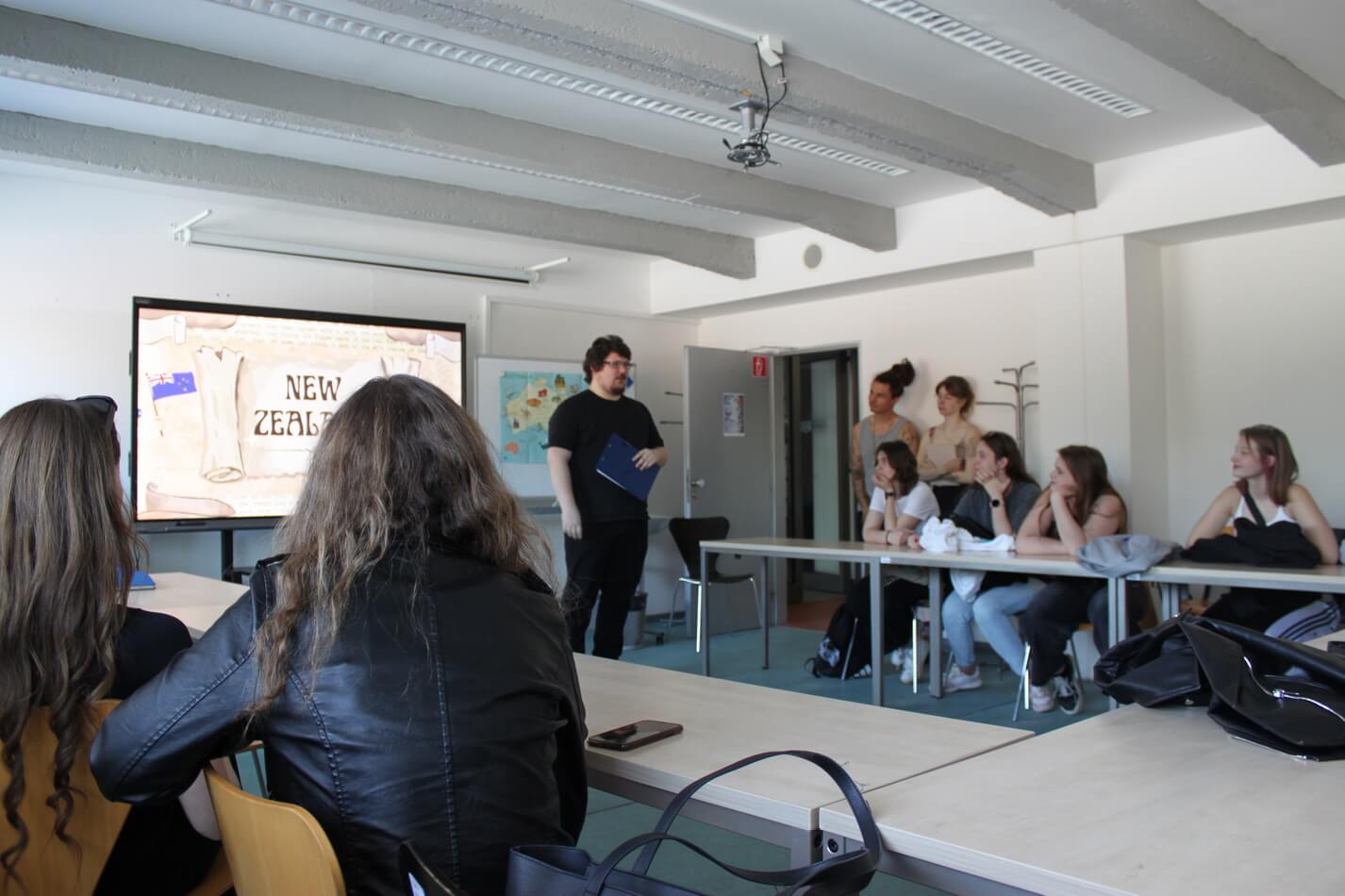 Department of English Language and Culture organized a Cultural Island-hopping Tour for high-school students from Nitra. The event consisted of guided tours of the school campus that was enriched by multiple presentations on different English speaking countries. The tour kicked off in the university library where the students got introduced to the enchanting land of South Africa. Slowly we moved on into the main building of our faculty. Here they discovered the many customs and movie starts of Australia, followed by the cold land of Canada, where they were able to dip their tongues into Canadian snacks. And as the cherry on top they were transported to the picturesque island of New Zealand. Here they could try understanding the local kiwi dialect, alongside with an insight to the island´s demography, architecture, cuisine and sports.The students left the grounds of our university filled with knowledge and delicious food.