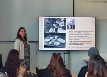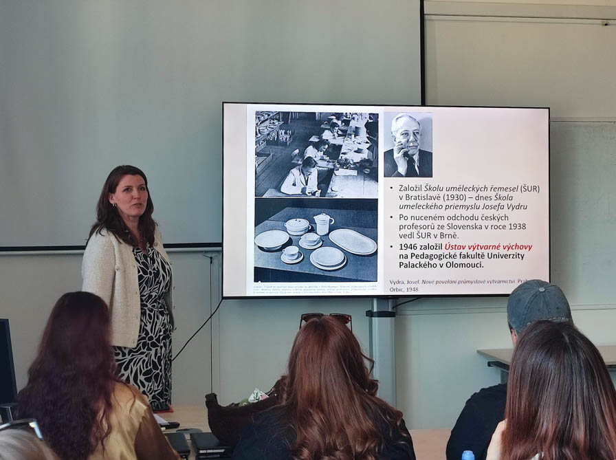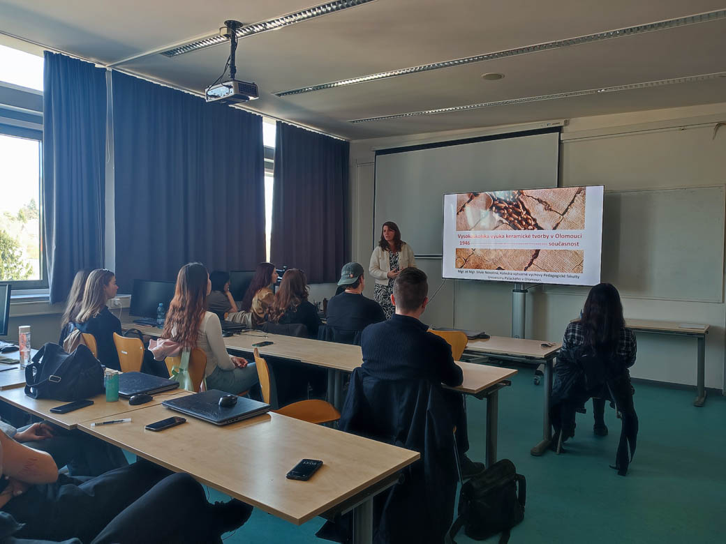 Mgr. et Mgr. Silvie Novotná viedla prednášku „Vyučovanie keramiky na Katedre výtvarné výchovy PF UP v Olomouci“, ktorá oboznámila účastníkov s históriou keramického ateliéru aj prístupu pedagógov k vyučovaniu keramiky v rámci vysokoškolskej prípravy učiteľov na Katedre výtvarnej výchovy PF UP v Olomouci v priebehu rokov od 1946 po súčasnosť. Študenti mali možnosť vidieť v prezentácii, obohatenej o bohatý obrazový materiál, rôzne tvorivé stratégie súčasných umelcov využívajúcich techniku keramiky, pedagógov, významných umeleckých osobností, pôsobiacich na PF UP v Olomouci v minulosti a dnes, ako aj vplyv prostredia – interiéru aj exteriéru katedry na prístup k vyučovaniu a tvorbe študentov.