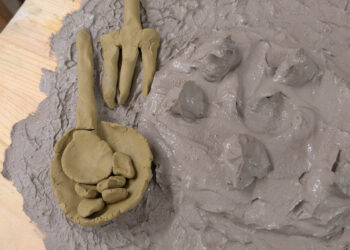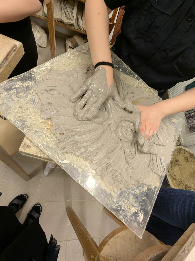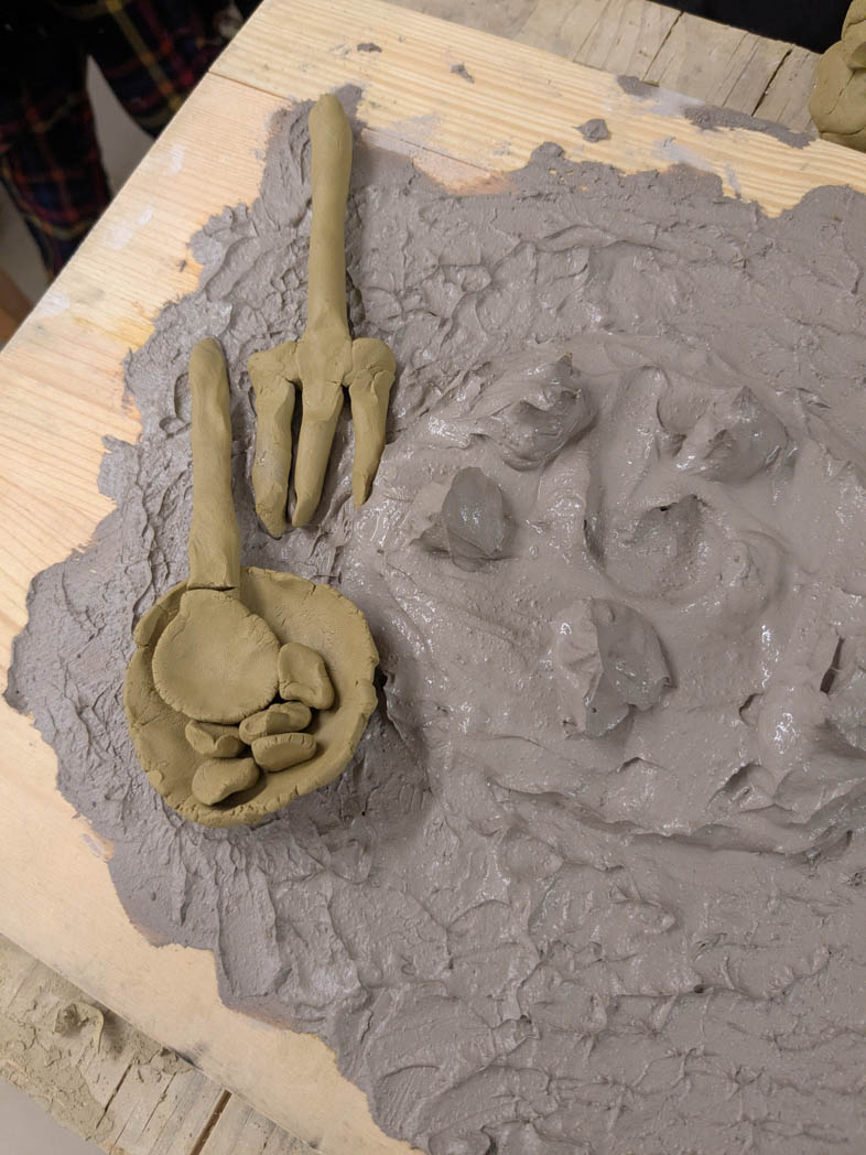 Tento workshop bol veľmi príjemný. Hlina je mojím obľúbeným materiálom, preto som rada, že som sa ho mohla zúčastniť. Tešila som sa z kontaktu s hlinou, z jej jemnej štruktúry a rôznej konzistencie. Páčilo sa mi aj to, že som mohla vyjadriť sama seba, svoje pocity či prežívanie. Mohla som sa s hlinou pohrať a vytvoriť práve to, na čo som mala náladu. Úlohy boli postavené tak, aby nás podporili v sebavyjadrení. Nebolo to o tom, že teraz sa učíme modelovať podľa nejakého modelu a záväzne, presne. Bolo to zoznámenie sa s hlinou, čo môže byť veľmi prínosné aj pri mojej budúcej práci so žiakmi. Veronika Hanesová, 1. ročník Mgr. BIVU22m