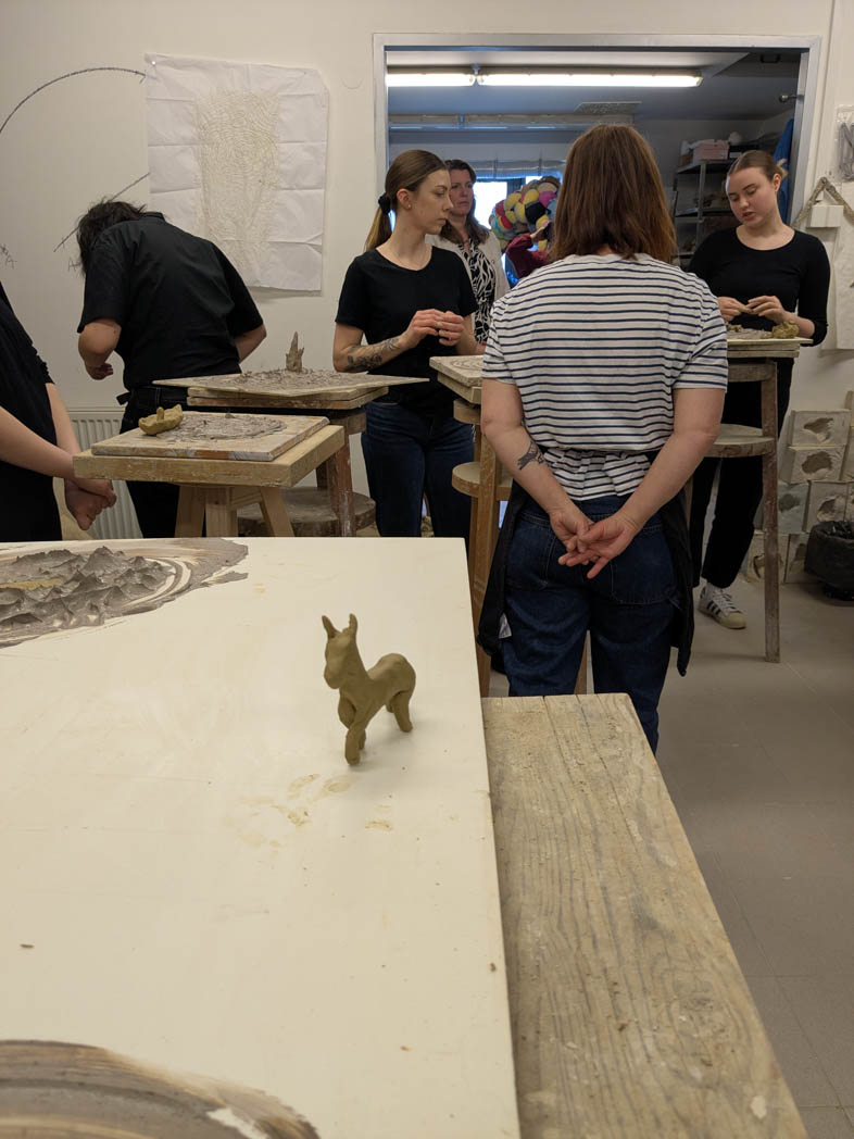 Mgr. Monika Dokoupilová, Ph.D. viedla workshop „Práca s hlinou ako didaktickým prostriedkom“, na ktorom študenti pracovali s hlinou tak, aby ich zážitok umožnil transfer do ich budúcej pedagogickej praxe. Po hravom úvode nasledovala tvorba na tému „Moja bezpečná krajina“. Po skončení tvorby študenti zdieľali obsah a posolstvo svojich diel. V súvislosti s prípravou do školskej praxe prostredníctvom skúsenosti budúci učitelia výtvarnej výchovy získali informácie, ako viesť výtvarnú aktivitu s hlinou, ako ju organizovať, ako formulovať úlohu, ako si byť vedomý možných úskalí výtvarného postupu, ako citlivo viesť zdieľanie výsledkov práce, a nakoniec ako prácu zhodnotiť a aktivitu uzavrieť. Lektorka uvádza svoju aktivitu slovami: „V lekci věnující se Bahnění, jak činnosti říkáme, se jedná o práci s připraveným hliněným bahnem, které na zúčastněné působí v rovině jejich prožívání a v oblasti haptiky, a práce s ním má relaxační a zážitkový potenciál. V procesu se vracíme k primární manipulaci s hlínou a procházíme přirozenou cestou vedoucí k modelaci tvaru. Zacházení s hliněným bahnem, hledání jeho potence v poli tvorby i emočního prožívání je počátkem dalších aktivit s hlínou. Tato aktivita může být počátkem k další výtvarné činnosti s již pevným hliněným materiálem a může být využita pro všechny věkové kategorie. Činnost je zaměřena na studenty, ale také se vztahuje k potencionálním žákům studentů – proč tuto činnost praktikovat s žáky, k čemu to je…“