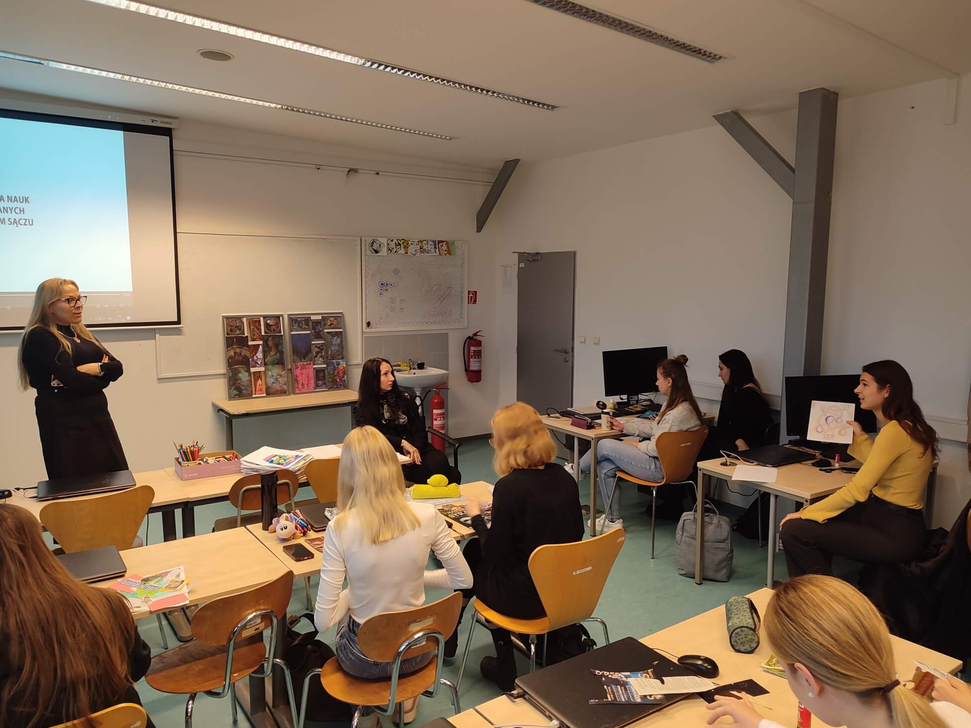 The lecture was presented by dr hab. Iwona Bugajska-Bigos, prof. ANS in Nowy Sącz in Poland, head of Department of Art education and visual arts within the Faculty of Social Sciences and Arts at University of applied sciences in Nowy Sącz. She was the initiator of establishing artistic education at her university, as well as developing new artistic and design programmes. In addition to teaching, she is also an active artist and exhibits regularly.