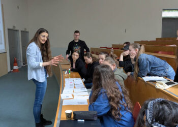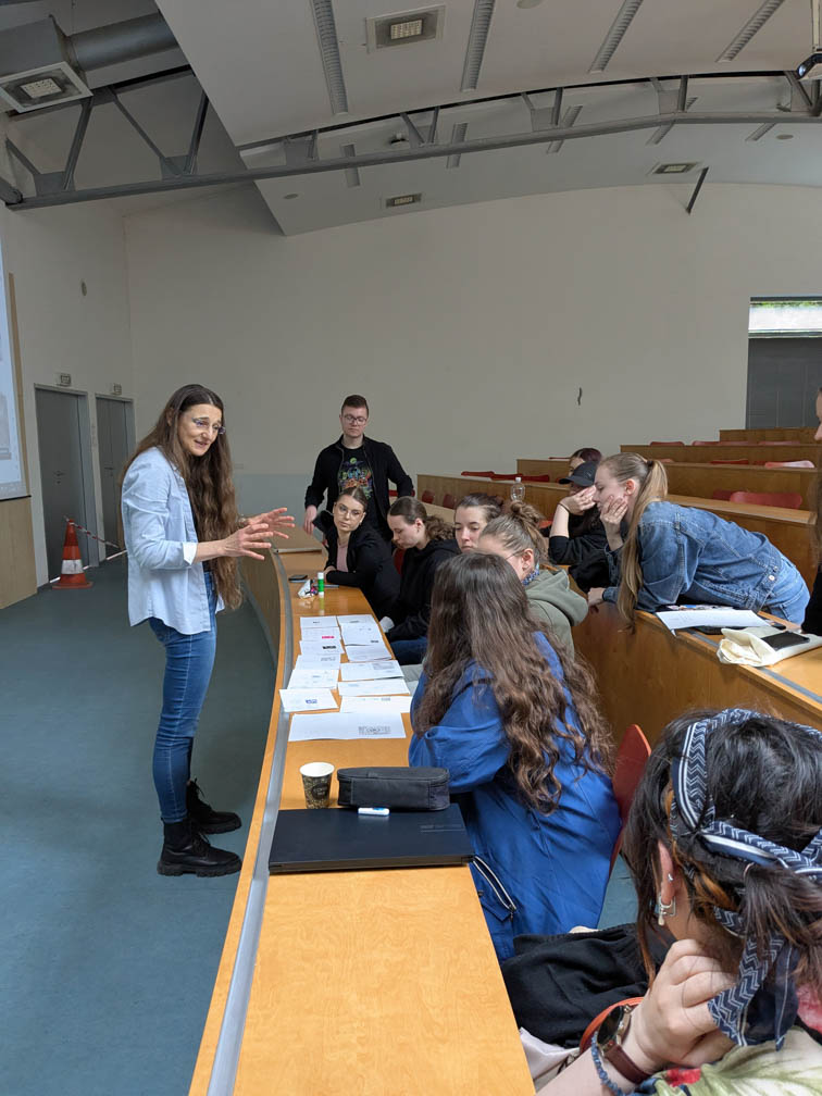 Dňa 15. apríla 2026 v čase 13:00 – 14:30 a 14:45 – 16:15 hod. sa uskutočnili v priestoroch Katedry výtvarnej tvorby a výchovy Pedagogickej fakulty Univerzity Konštantína Filozofa v Nitre (ďalej KVTV PF UKF) prednáška a workshop pre budúcich učiteľov výtvarnej výchovy, s cieľom rozvíjať ich učiteľské kompetencie v oblasti formálnej aj neformálnej výtvarnej edukácie. Tieto sa realizovali v rámci projektu KEGA č. 020UKF-4/2024 „Inovácia vysokoškolskej prípravy učiteľov výtvarného umenia v prepojení na potreby spoločnosti 21. storočia“ (zodp. riešiteľ doc. PhDr. Adriana Récka, PhD., univ. prof.), ktorého hlavným cieľom je inovovať obsah vzdelávania vysokoškolskej prípravy budúcich učiteľov výtvarného umenia v súlade s aktuálnymi výzvami a potrebami edukačnej praxe. Jednou z najdôležitejších výziev súčasnej edukačnej praxe je prepojenie vysokoškolskej prípravy učiteľov so školskou praxou a praktickými odbornými zručnosťami. Schopnosť správnym vyučovacím prístupom nevytvárať vonkajšie bariéry tvorivosti a počas výtvarnej tvorby nepodporovať vznik vnútorných bariér tvorivosti, ako aj aplikovať tieto princípy do vyučovania výtvarnej výchovy a dosiahnuť zvnútornenie jednotlivých princípov rozvoja tvorivosti, sú jednými z kľúčových kompetencií učiteľa.