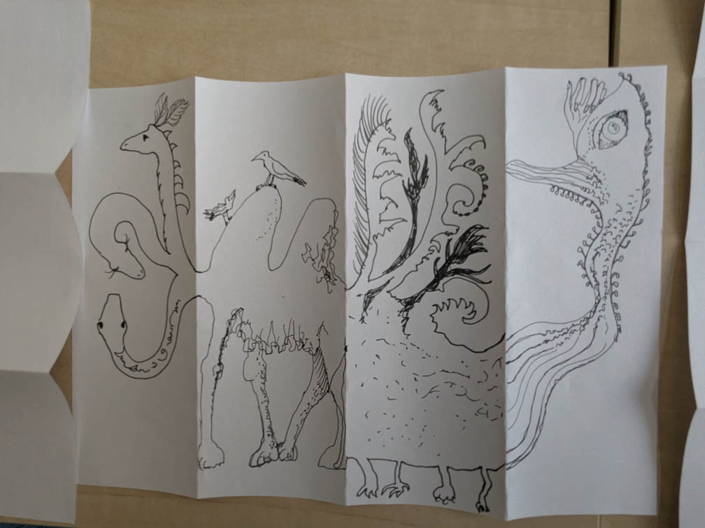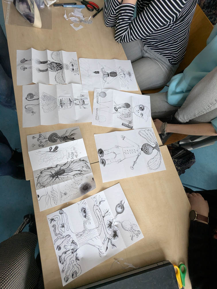 Následný workshop bol zameraný na možnosti podpory tvorivosti prostredníctvom výtvarnej hry, tvorivého procesu a práce s náhodou. Dôraz bol kladený na schopnosť študentov reflektovať podmienky tvorivého procesu, charakteristiky tvorivého produktu i vlastný tvorivý vklad. Študenti pracovali s papierom, lepidlom, nožnicami a fixkou, čiže ľahko dostupnými pomôckami. Rozvoj tvorivosti nepotrebuje zložité postupy, ani nákladnú prípravu, ani efektné výsledky – v tomto duchu lektorka viedla celý proces. Prostredníctvom vlastného zážitku výtvarnej hry sa študentky oboznámili s jednoduchými a univerzálnymi postupmi rozvoja tvorivosti využiteľnými vo výtvarnej výchove.