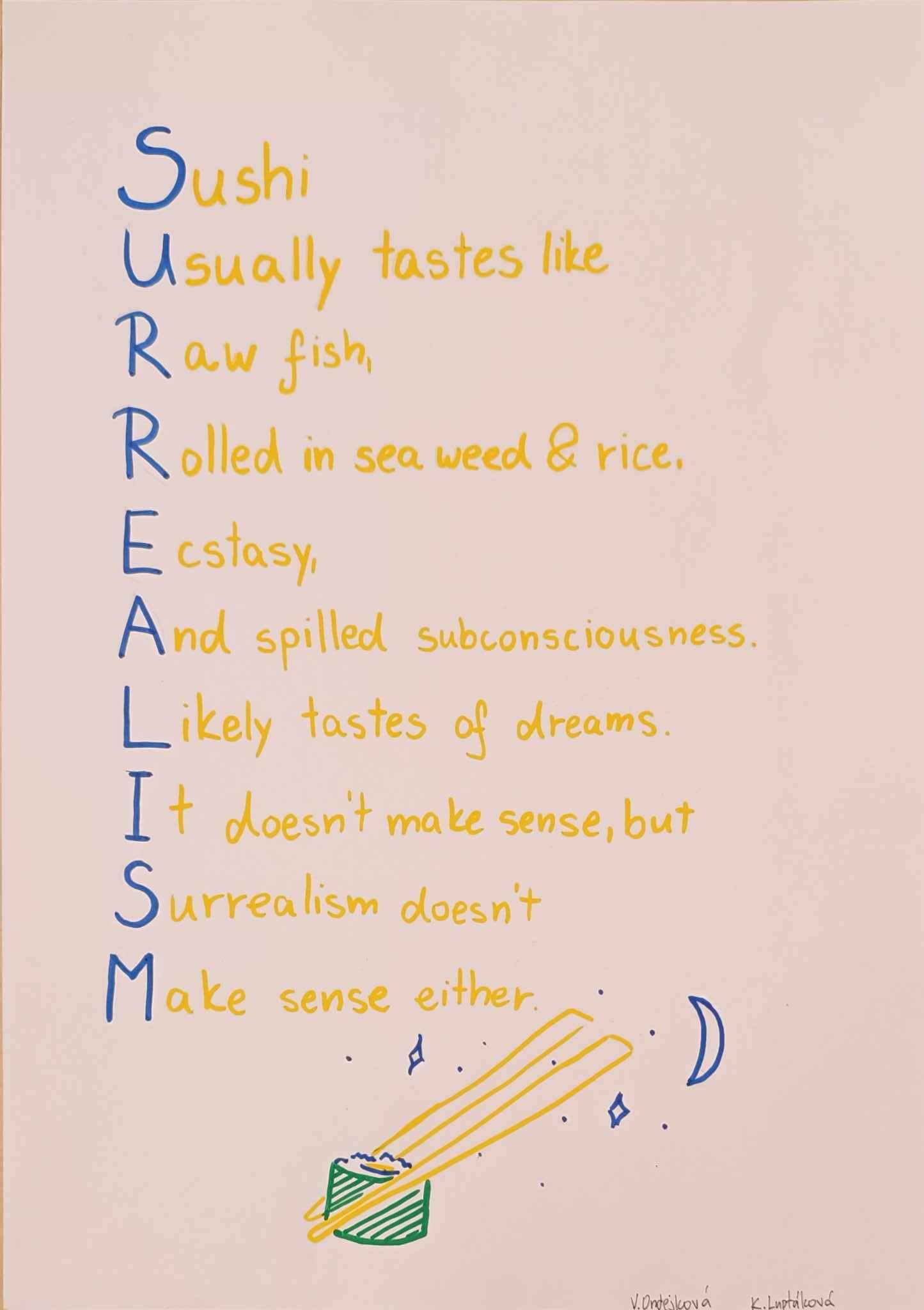 Doc. Mgr. Monika Šavelová, PhD. first presented individual literary forms and their specifics, and at the same time she also opened a discussion about their (un)translatability. During the workshop, she also accompanied the participants through the process of creating original texts. Students had the opportunity to try writing experimental texts, visual poems and other literary forms that combine text with visual elements. The results of creative activity are literary forms such as calligrams, acrostics, or lipograms in English and Slovak.