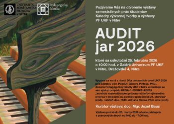 Pedagogická fakulta Univerzity Konštantína Filozofa v Nitre Vás pozýva na otvorenie výstavy semestrálnych prác študentov Katedry výtvarnej tvorby a výchovy PF UKF v Nitre AUDIT/jar 2026, ktoré sa uskutoční 26. februára 2026 o 10:00 hod. v Galérii Univerzum PF UKF v Nitre, Dražovská 4, Nitra.