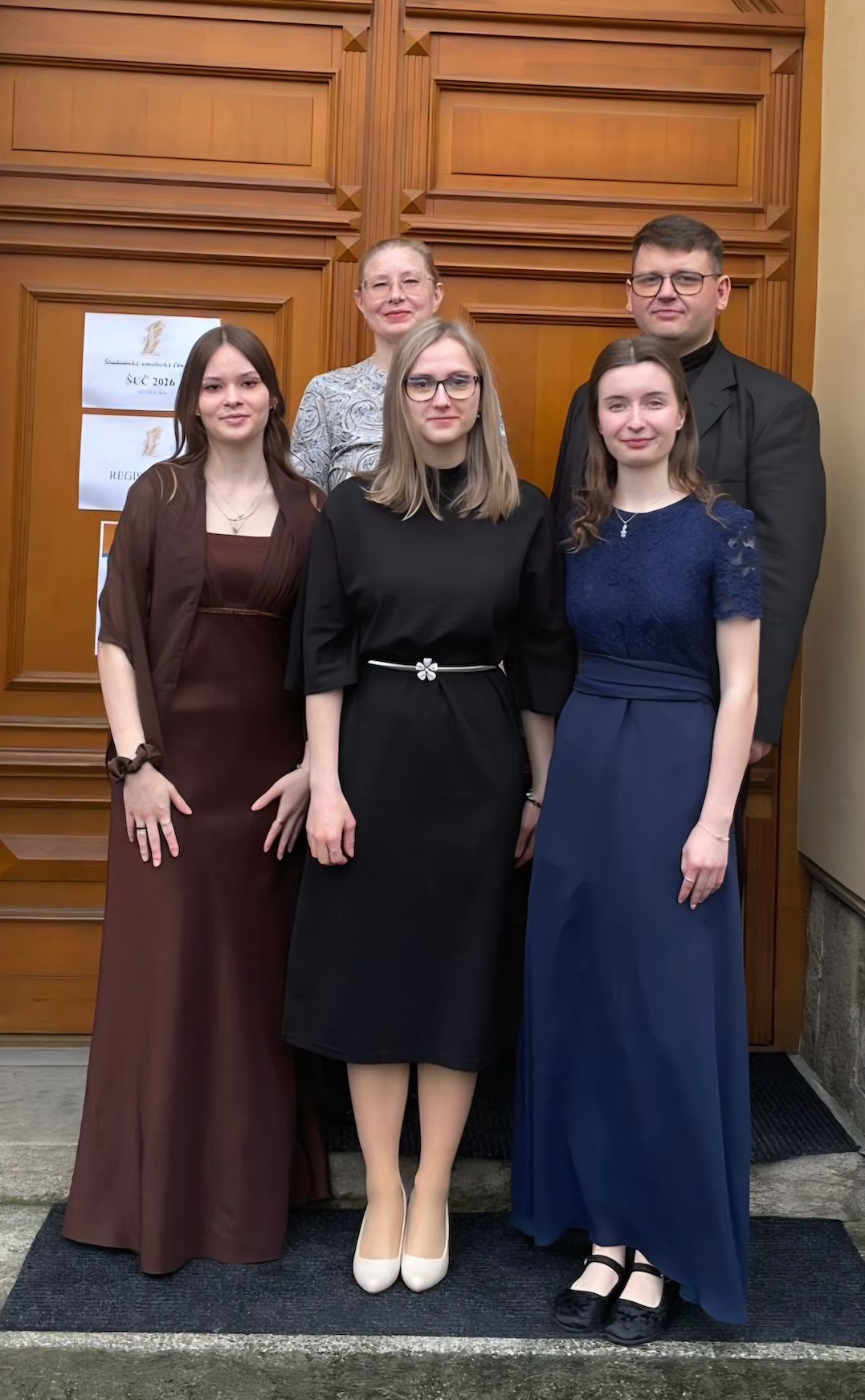 Svoje interpretačné umenie prezentovali tri študentky Katedry hudby – Klára Šillo, Michaela Bělinová a Viktória Mikušová, ktoré vo vyrovnanej konkurencii zastupovali našu univerzitu v III. kategórii v dvoch speváckych odboroch určených pre študentov kombinačného štúdia – v sólovom a komornom speve. Vďaka pôsobivým umeleckým výkonom Klára Šillo a Michaela Bělinová získali v odbore komorný spev výborné 2. miesto a odborná porota ich ocenila tiež Cenou za interpretáciu duchovnej skladby In dulci jubilo anonymného autora v úprave E. Kráka. Obe študentky boli ocenené aj v odbore sólový spev. Klára Šillo získala 3. miesto a Michaela Bělinová obsadila vynikajúce 2. miesto a zároveň ju porota odmenila špeciálnou Cenou za interpretáciu piesne Január od S. Šurina. Našim speváčkam bol výbornou oporou klavírny partner Mgr. art. Jozef Kisjakab.