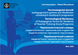 Fenyvesiová, Lívia – Marcineková, Tatiana. 2023. Terminologický slovník pedagogických pojmov pre študentov učiteľských študijných programov. Terminological Dictionary of Pedagogical Terms for Students of Teacher Training Study Programs. Терминологический словарь педагогических терминов для студентов педагогических программ подготовки. Термінологічний словник педагогічних термінів для студентів педагогічних програм підготовки, Nitra : PF UKF, 52 s., ISBN 978-80-558-2080-4 (print), ISBN978-80-558-2081-1 (online)