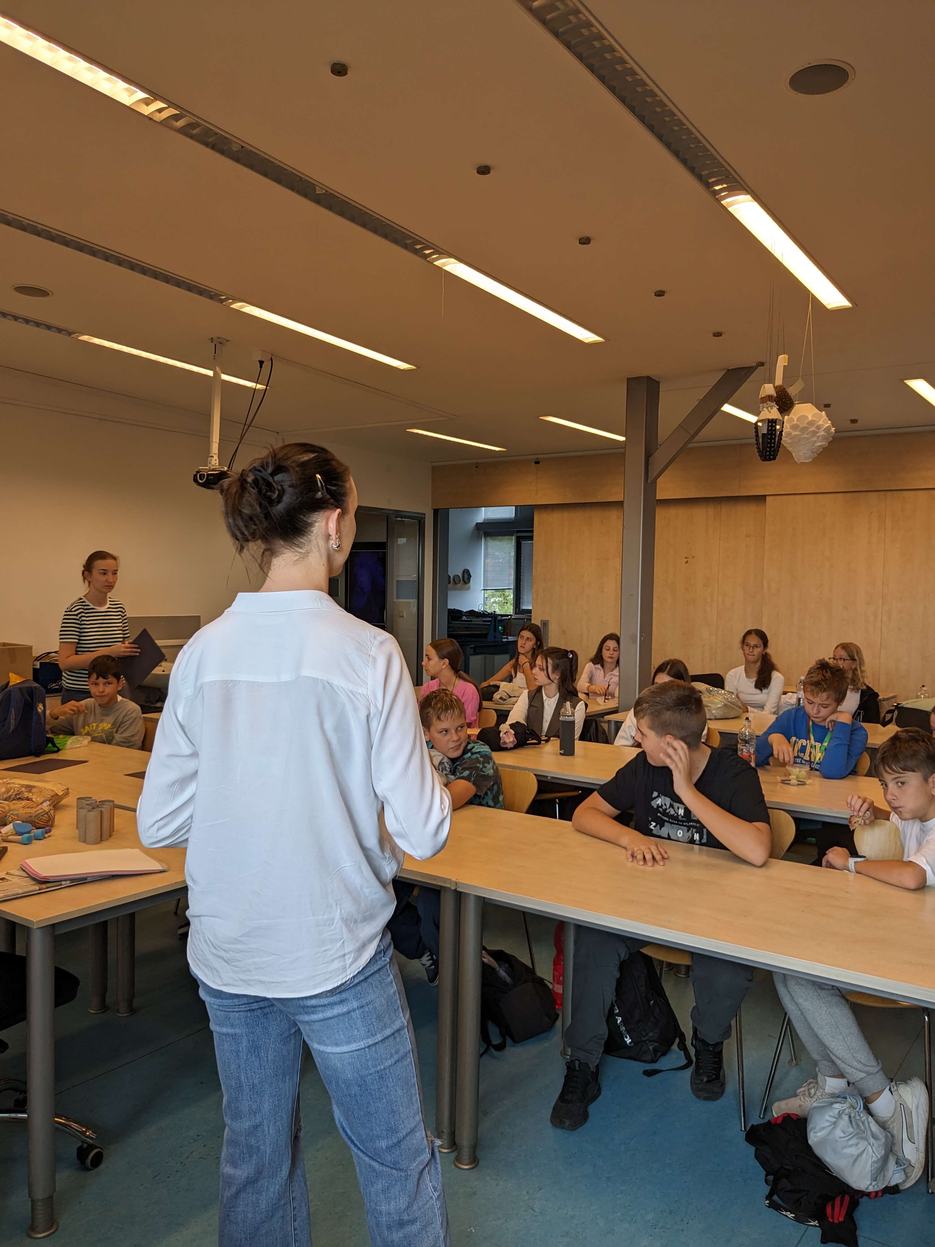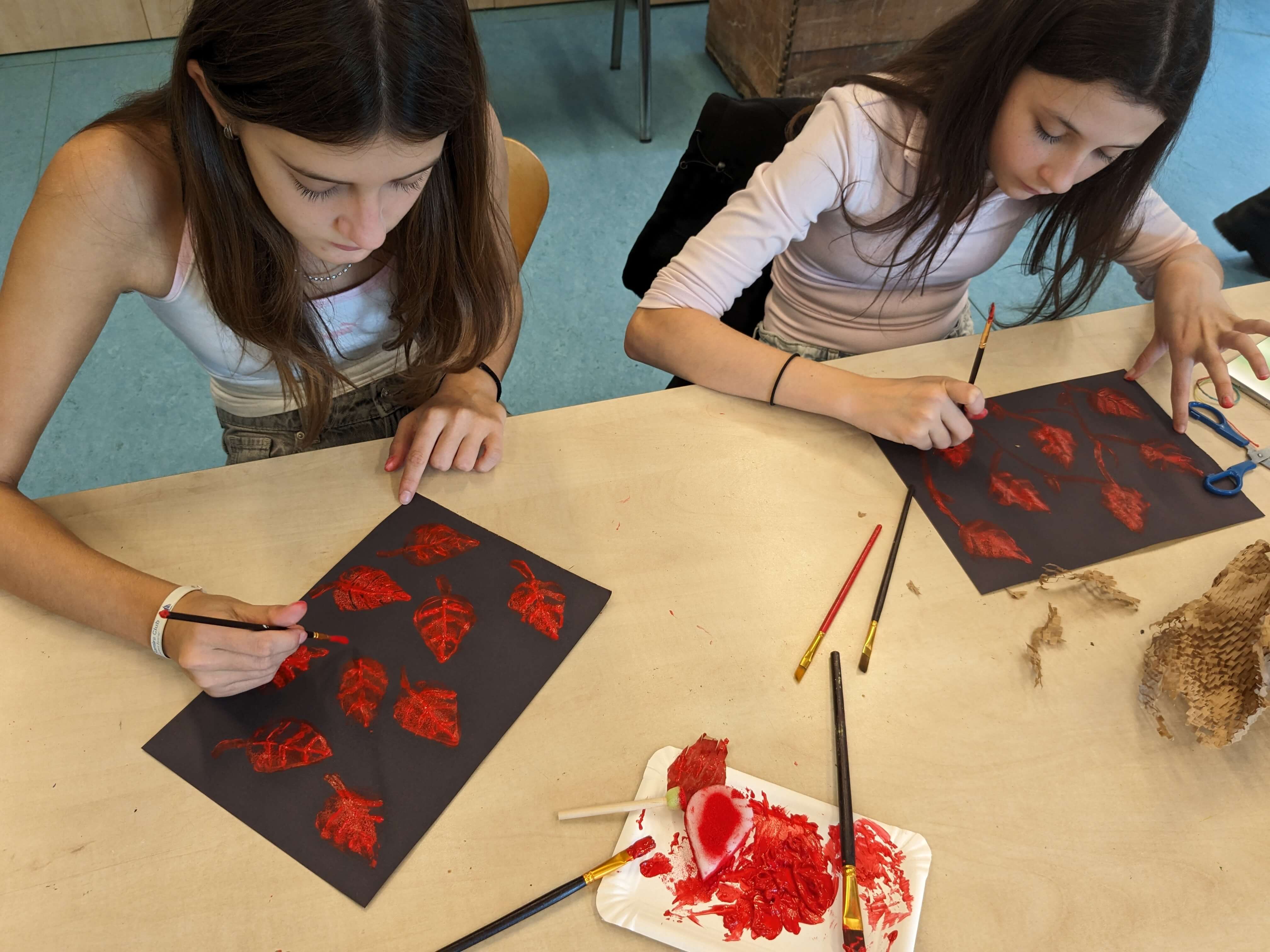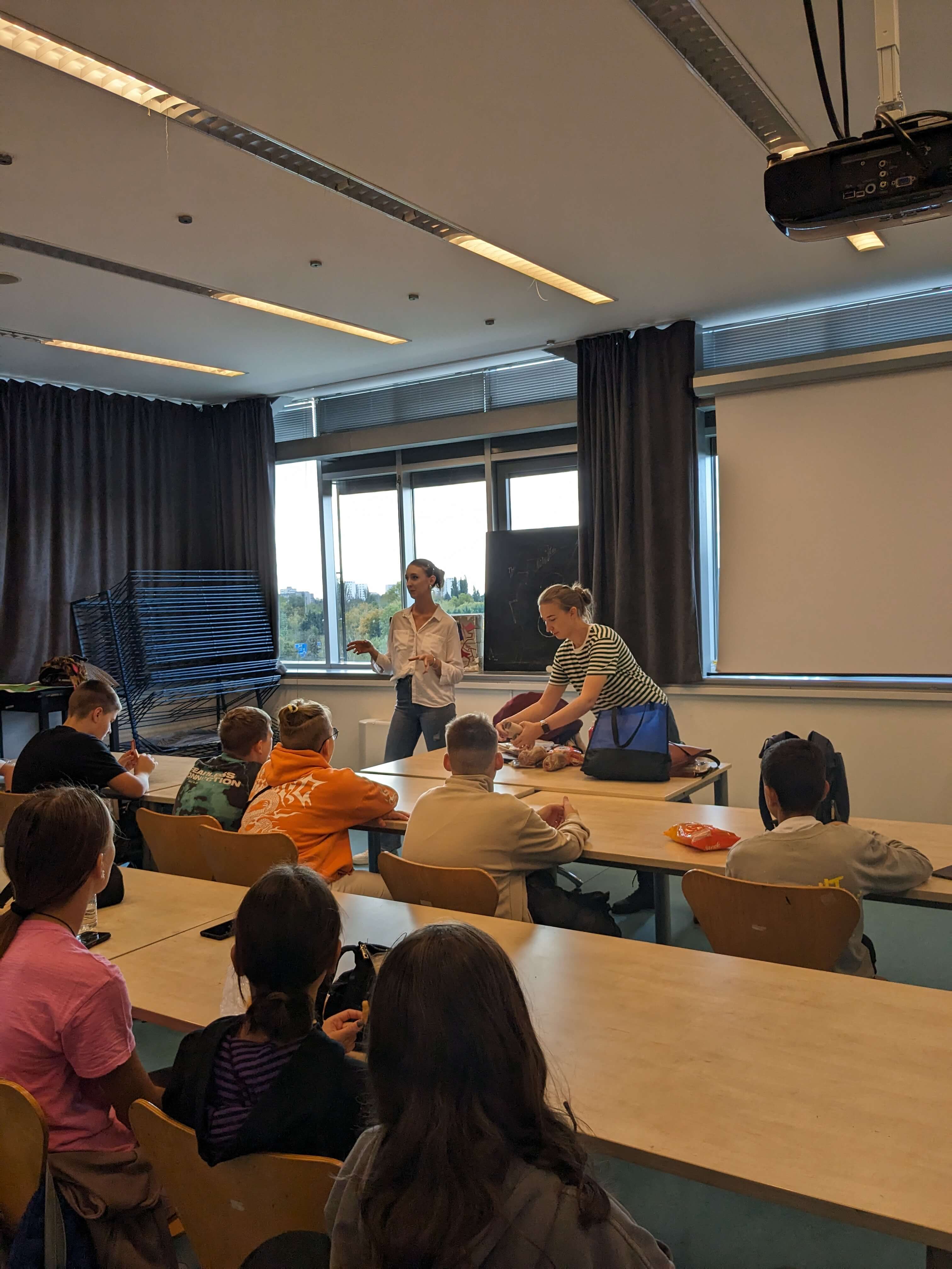 Žiakov na katedre privítala vedúca katedry PaedDr. Janka Satková, PhD. (absolventka KVTV PF UKF), a študentka 2. ročníka Mgr. stupňa kombinačného štúdia učiteľstva výtvarného umenia a psychológie Bc. Viktória Svitačová, ktorá žiakom prezradila, prečo má rada výtvarnú tvorbu a výtvarnú výchovu. Vyzdvihla možnosť vyjadriť sa bez slov, pretože výtvarná výchova nám umožňuje rozvinúť svoju fantáziu a vyjadriť pocity bez slov. Za najkrajšie na nej považuje to, že v oblasti voľnej výtvarnej tvorby neexistujú žiadne nesprávne odpovede. Žiak môže získavať nové poznatky, objavovať nové techniky, plošné alebo priestorové. Podľa jej názoru, výtvarná tvorba podporuje rozvoj myslenia, hlavne kreatívneho, pomáha nám uvoľniť sa, zlepšuje koncentráciu, čo môže byť užitočné aj v iných predmetoch. Vyzvala žiakov, aby sa nebáli skúsiť nové veci, robiť chyby a hlavne mať z tvorby radosť. Nakoniec zdôraznila, že výtvarná výchova nám môže dať priestor na to, aby sme boli sami sebou a objavili svoj skrytý talent. V samostatnej výtvarnej tvorbe žiakom študentka pomáhala a asistovala lektorke workshopu. Nasledovala samotná výtvarná tvorba, ktorú iniciovala a viedla Mgr. Andrea Šoporová Chochoľáková. Zvolenou výtvarnou technikou sa stalo maľovanie penovými štetcami a odtláčanie, pričom lektorka ako motiváciu využila študentské práce z jej štúdia na KVTV PF UKF v Nitre. Žiaci po skončení tvorby svoju prácu zhodnotili a potom si prezreli priestory katedry, jej ateliéry, aj študentské práce vystavené na chodbe. Odchodom z Nitry sa ich exkurzia skončila.