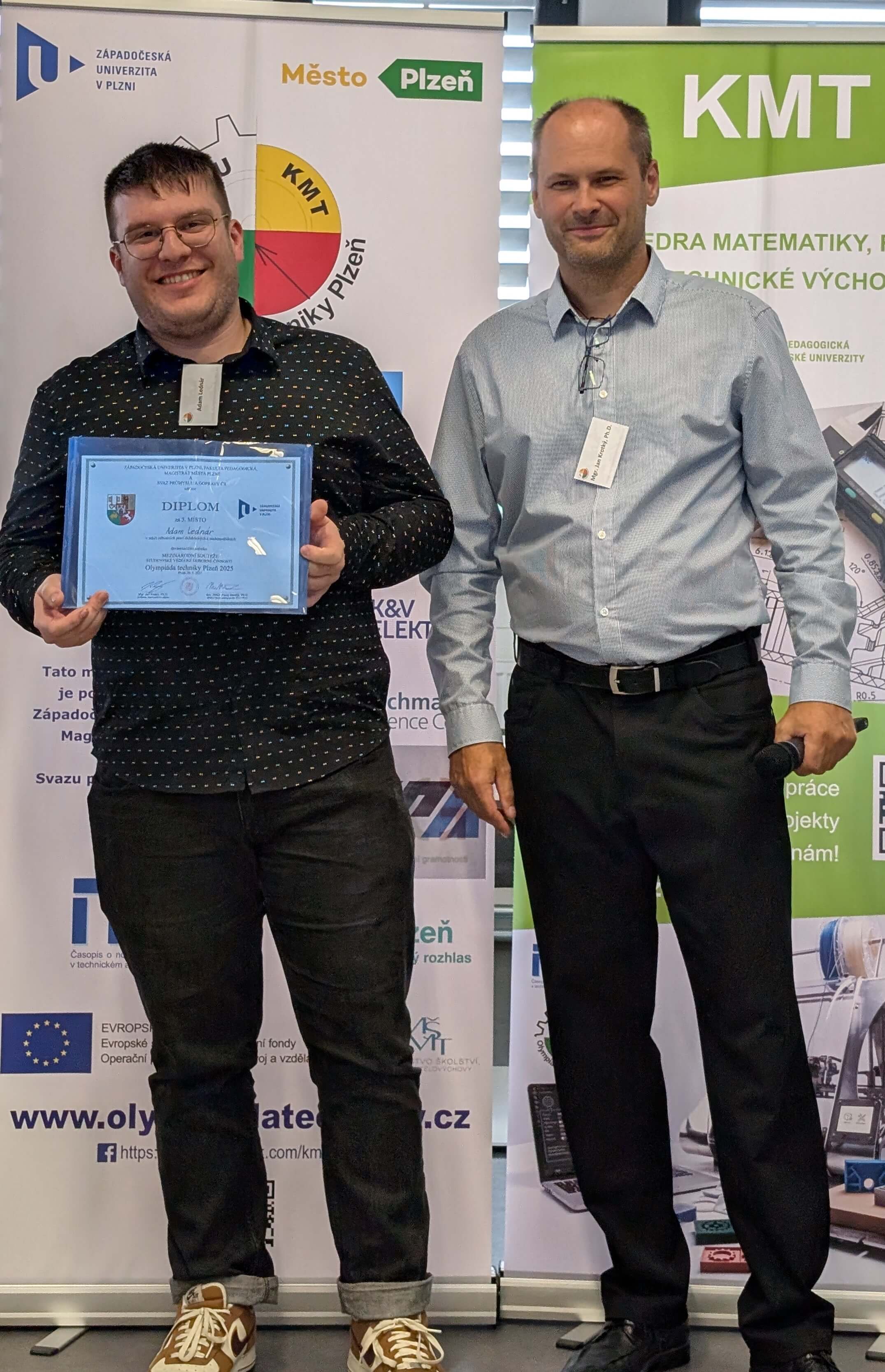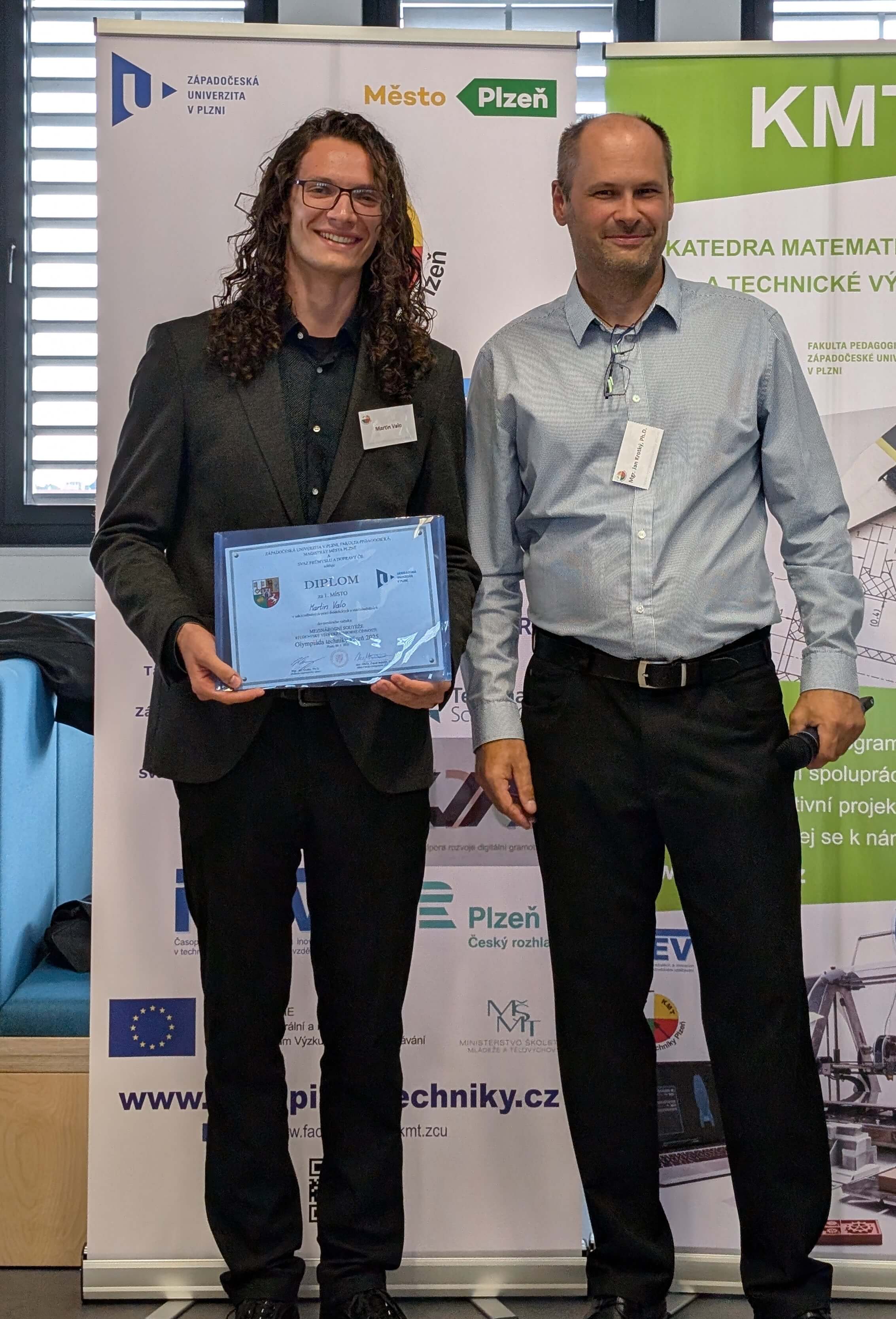 Študenti Katedry techniky a informačných technológií Pedagogickej fakulty UKF v Nitre, Bc. Adam Lednár a Martin Valo, úspešne reprezentovali našu univerzitu na 19. ročníku medzinárodnej súťaže Olympiáda techniky Plzeň 2025, ktorá sa konala v máji na pôde Západočeskej univerzity v Plzni.